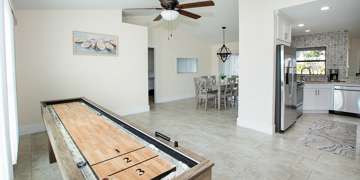 It takes about 20 minutes by boat to river along the Everest Canal, passing under a bridge and coming out to the river close to the Four Mile Cove Ecological Preserve. From there you can travel by boat to the South of Cape Coral, the Marinas and the islands of Sanibel and Captiva.